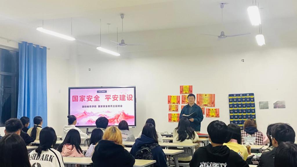 本站讯(国际教育学院 赖培鑫 学生记者 周熙睿)为贯彻中央和省委政府关于推进平安建设和法治建设的重要决策部署,宣传平安中国、平安江西、平安宜职的大安全理念,培养学生法制观念,国际教育学院于4月6日晚自习在各班开展国家安全教育主题班会,会议由各班班主任主持,学院全体学生参与。