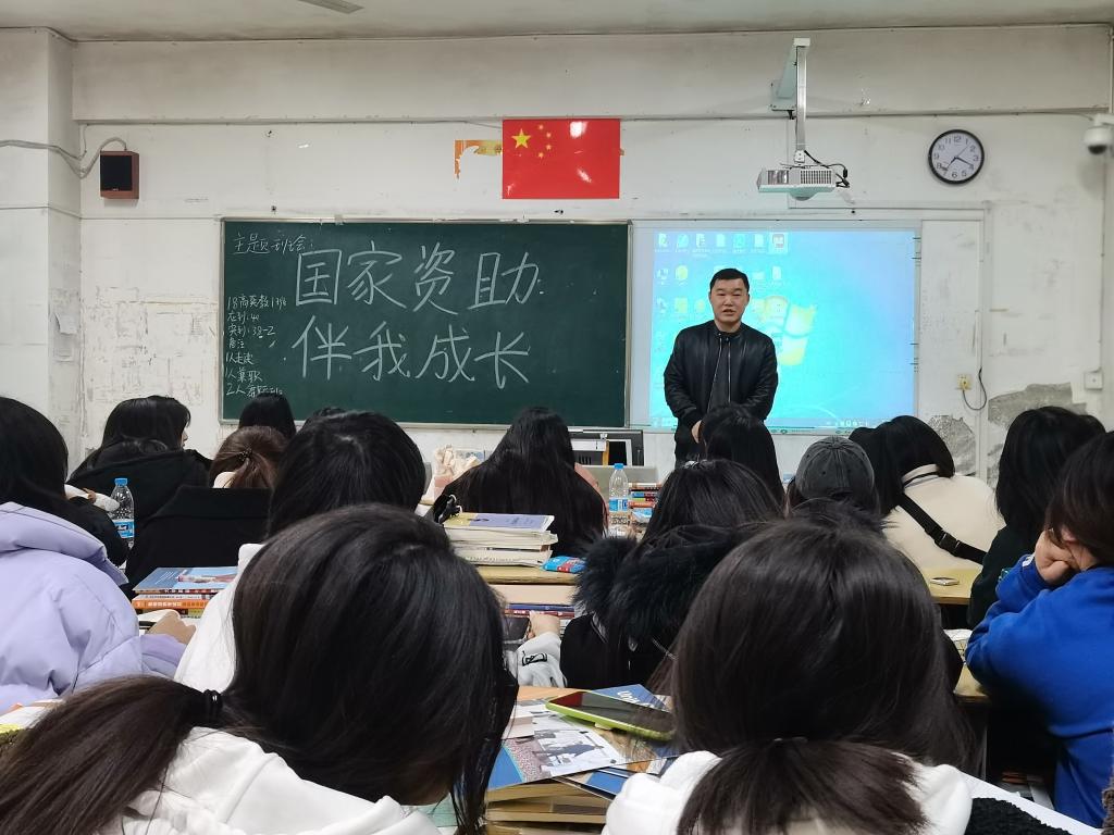 会上各班主任首先向同学们介绍国家在高等教育阶段建立起了国家奖学金、国家励志奖学金、国家助学金、国家助学贷款等多种形式有机结合的高校学生资助政策体系,目标是从制度上保障不让一位同学因家庭经济困难而失学,从政策上鼓励同学家们积极上进,成为国家有用之才。班主任们随后进行“感恩”教育,告诫同学们要懂得感恩,感谢党和国家对贫困学生的帮助,并且在今后的人生道路中要努力成长为关爱他人,关心社会,有博爱精神的人。