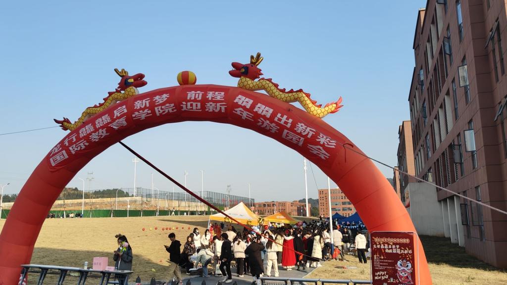 本站讯(国际教育学院 彭娟 )岁序更替,华章日新,为让在校师生感受浓浓的年味,丰富大学生的课余生活,展现社团风采,共迎新年新气象,国际教育学院于12月27日下午在博达楼B区空地开展新春游园会活动。刘江毅副校长也来到游园会,与同学们一起感受欢乐氛围。