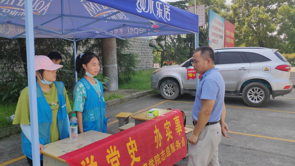 本次实践活动还得到了校领导的指导与鼓励,校党委委员副校长张印华在督导开学工作的过程中,也来到我院志愿服务点,与值守的老师、学生交流探讨,赞扬大家不惧烈日、乐于助人的志愿精神,同时也鼓励大家多参与志愿实践、多思考有效方法、多创新服务方式,在帮助他人的过程中实现人生价值。