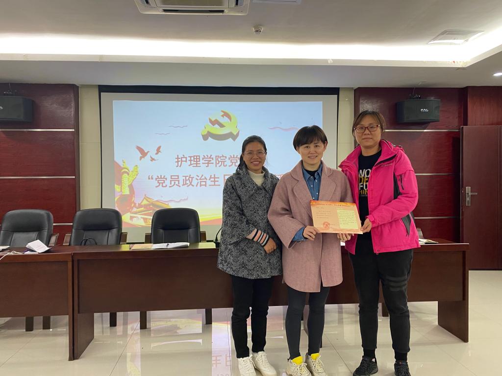 之后,护理学院党总支学生工作党支部为3月份过政治生日的党员同志送上了政治生日贺卡和祝福。随即,过政治生日的党员张雯发表了政治生日感言,她表示将时刻牢记党员身份,注重党性修养,增强党员意识,不忘初心,永葆共产党员的本色,以昂扬斗志和饱满的热情投入到工作中,发挥党员的先锋模范作用。感言后,张雯同志带领全体党员重温了入党誓词。