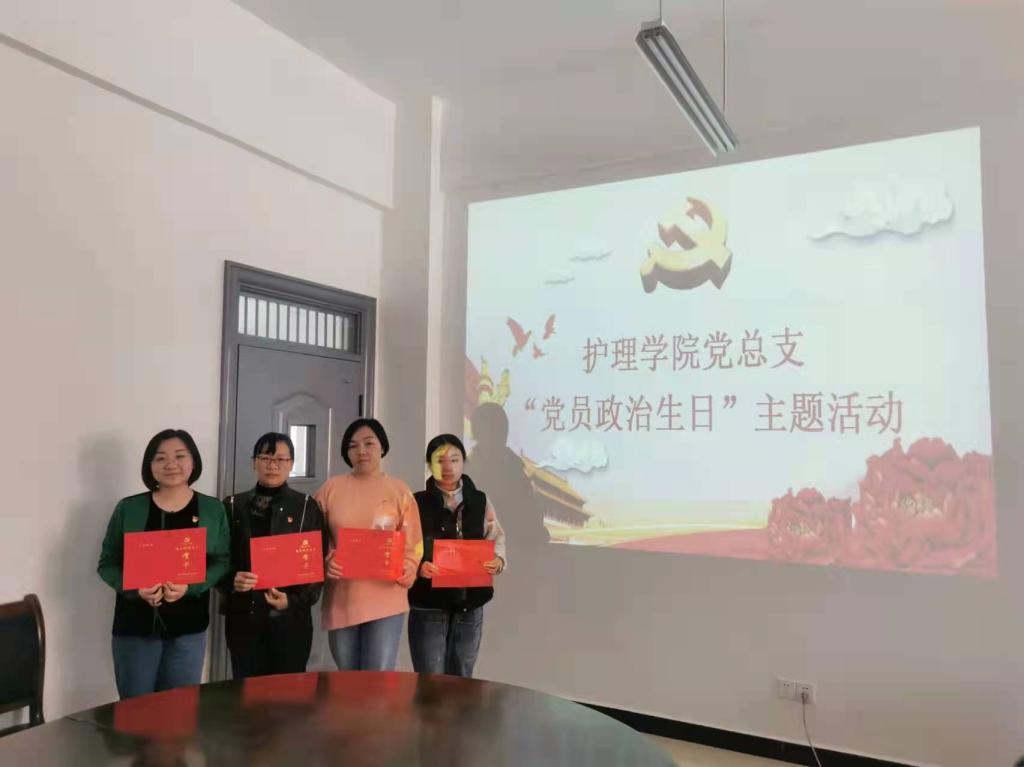 之后,护理学院党总支为四月份过政治生日的党员同志们送上了政治生日贺卡和祝福。随即,过政治生日的党员们纷纷发表了政治生日感言,她们表示时刻牢记党员身份,注重党性修养,增强党员意识,不忘初心,永葆共产党员的本色,以昂扬斗志和饱满的热情投入到工作中,发挥党员的先锋模范作用。感言后,过政治生日党员代表周玥同志带领全体党员重温了入党誓词。