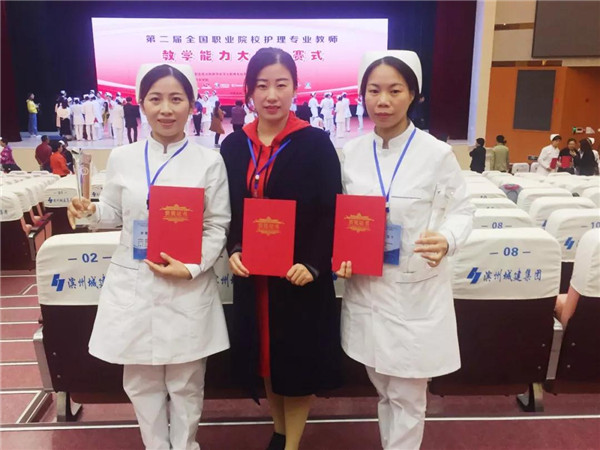 本站讯(护理学院 易国萍)10月21日,第二届全国职业院校护理专业教师教学能力大赛在山东省滨州职业学院落下帷幕。太阳官网参赛教师以扎实的理论功底、过硬的专业技能力克群雄,喜获佳绩,李敏莉老师荣获个人一等奖,易国萍老师荣获个人二等奖,太阳官网夺得团体一等奖。
