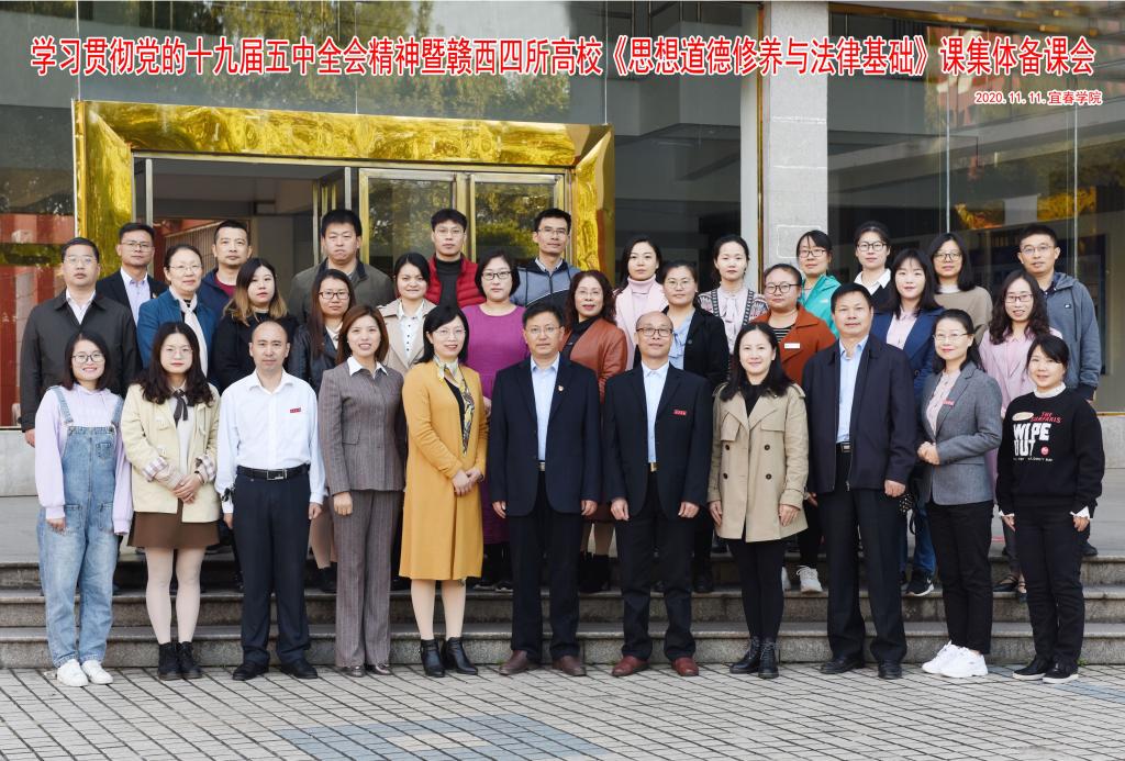 (本站讯 马克思主义学院 万露露)为学习好、贯彻好党的十九届五中全会精神,进一步巩固马克思主义在高校意识形态领域的指导地位,大力推进高校思政课集体备课和跨校协同攻关,逐步形成思政课教学共同体,切实提升赣西高校思政课教学质量,11月11日上午8:30,由宜春学院马克思主义学院联合古天乐代言太阳集团城网址、宜春幼儿师范高等专科学校、赣西科技职业学院开展的《思想道德修养与法律基础》集体备课会在宜春学院人文楼一楼马克思主义学院会议室举行,会议就如何将十九届五中全会精神融入思政课教学及“基础”课相关专题教学进行研讨,赣西四所高校36名思政教师参加了此次集体备课,会议由宜春学院基础教研室主任王灵芝主持。