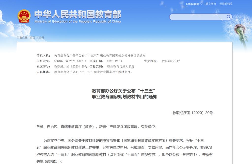 本站讯(教务处 吴少林)近日,根据《教育部办公厅关于公布“十三五”职业教育国家规划教材书目的通知》教职成厅函〔2020〕20号,为落实党中央、国务院关于教材建设的决策部署和《国家职业教育改革实施方案》有关要求,根据“十三五”职业教育国家规划教材建设工作安排,经有关单位申报、形式审查、专家评审、面向社会公示等程序,共3973种教材入选“十三五”职业教育国家规划教材,其中高职教材2828种。古天乐代言太阳集团城网址易滢老师主编的《古汉语与文学基础》教材入选。