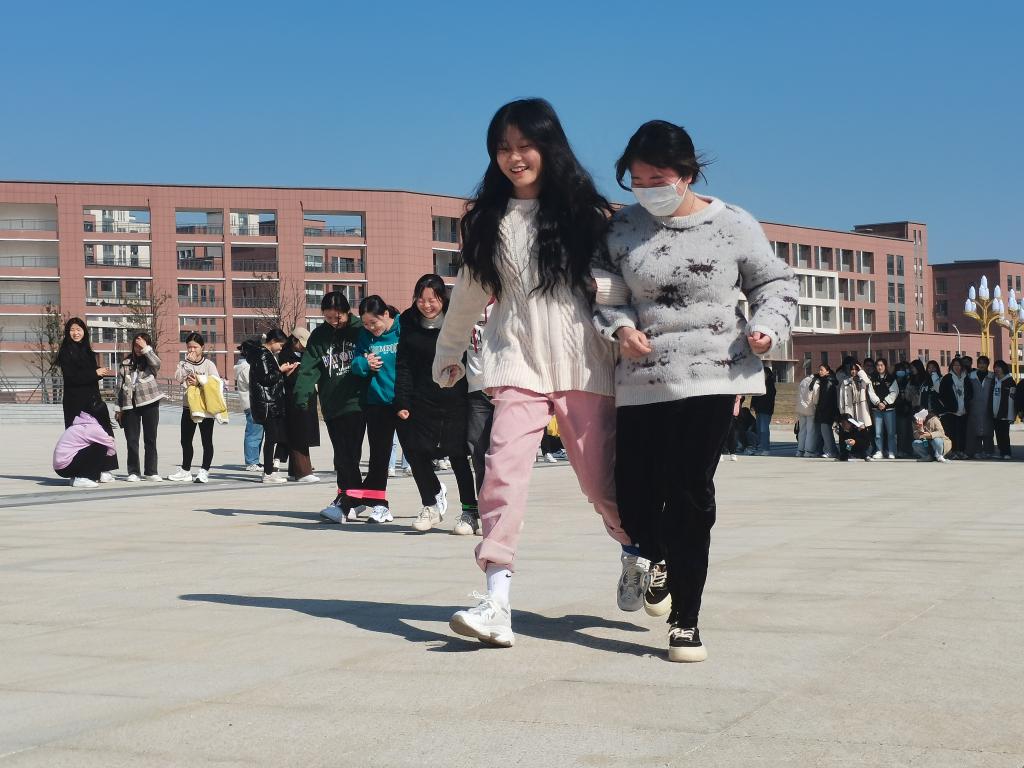 活动开始,由组织部工作人员负责做好各班签到工作,仔细讲解竞答活动的游戏规则。随着裁判员一声哨响,每组选手们都团结一致、齐心协力,他们互相搭着肩,揽着腰,携手前行,奋力奔跑。“加油!加油! ...现场观众纷纷为参赛选手加油打气。”热闹的场面、紧张的氛围、急切的心情使个别组合乱了阵脚,有的组合摔倒后迅速调整后继续前进;有的组合喊着“1、2 ! 1、2!”口号迈出整齐步伐;有的组合配合颇有默契,跑得飞快,把对手远远地抛在身后.....