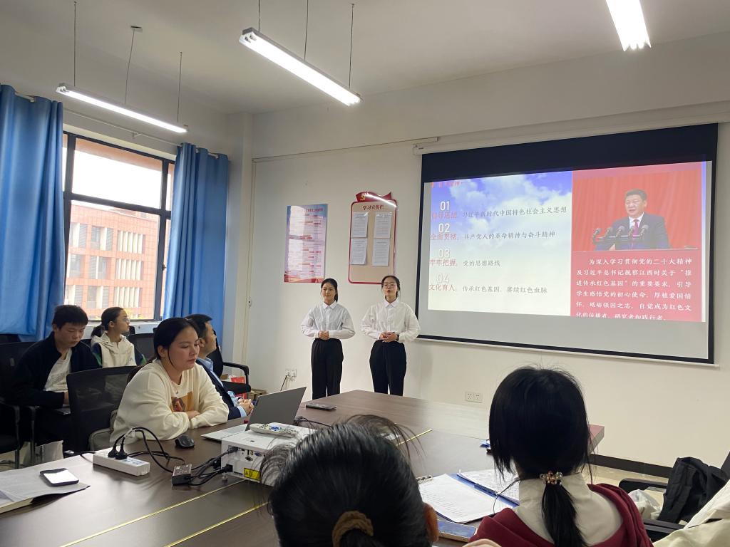 活动中,肖勇介绍了红色班级创建的政策与要求,之后,两个班将班级特色与红色文化有机融合,依次就班风打造、总体规划、具体措施和创建进度等内容,详细讲解红色班级创建的思路与方案。最后,支部党员结合江西本省红色资源、红色文化、师范专业特点、师范生职业规划,针对各班的创建方案、培育路径一一给予意见。