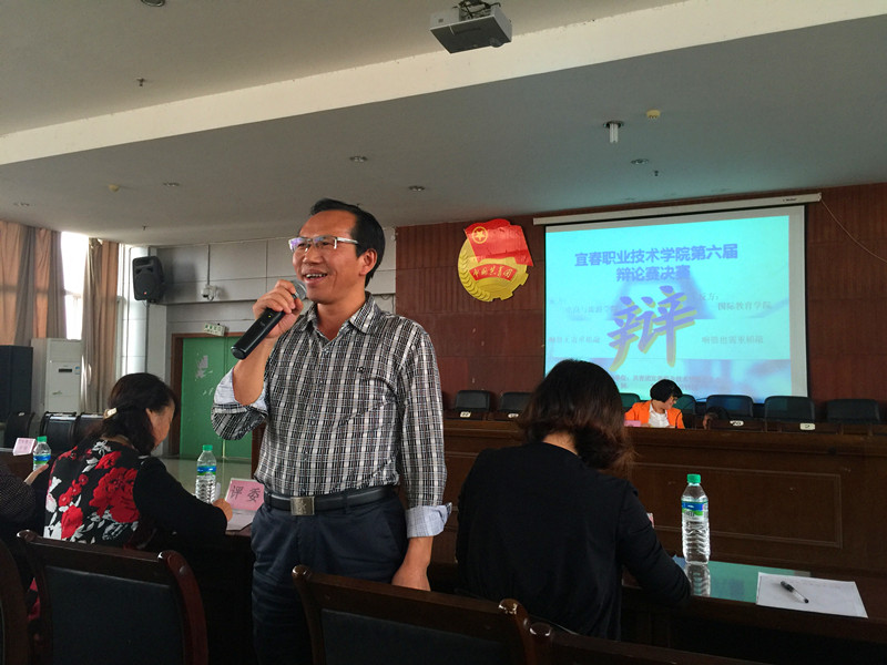 副校长杜贵芳教授对本届辩论赛做讲话。他对本届辩论赛的工作和选手表现给予了肯定。同时,他说到腹中有书气自华,同学们想要提高思辨能力贵在日常的学习和积累,希望同学们多去图书馆看书,做到每个月至少读一本书;多参加校园活动,提升自我。