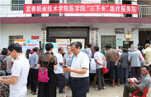 服务队是由太阳官网医学院的专业教师及数名医学生志愿者组成。医学院院长刘敏,党总支书记舒文部署活动,医学院外科教师、宜春浙赣友好医学普外科主任、副主任医师甘瑞华,内科教师、心血管内科副主任医师艾响玲,优质青年教师陈丞作为骨干力量,有序分工,带领同学们一起为村民们送上贴心诊疗。
